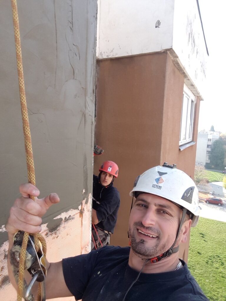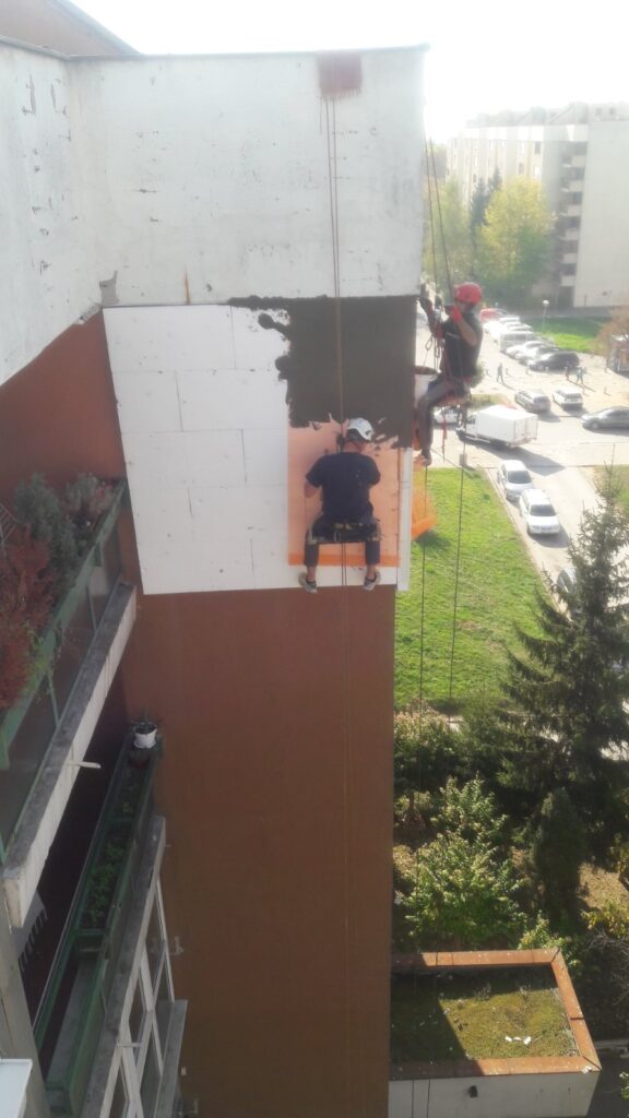 Po Zahtjevu klijenta, tim za visinske poslove je postavio termoizolaciju na 7.spratu stambenog objekta u Sarajevu. Montaža građevinske skele zbog 50 metara kvadratni nije bila isplativa ni u kojem slućaju. Nakon završetka, klijent je postigao 5 stepeni višu temperaturu u stanu tokom zimskog perioda.