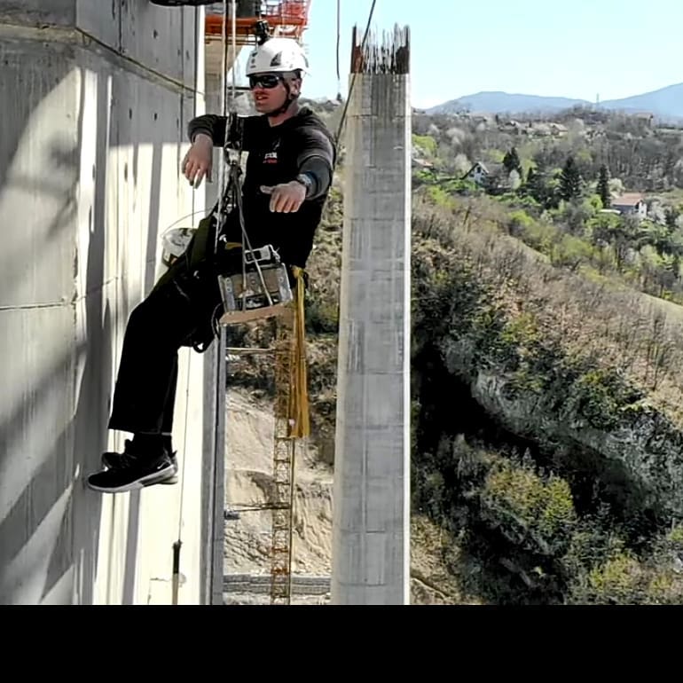 U saradnji sa građevinskom firmom Strabag, vršili smo tehničku ispomoć na izgradni največeg vijadukta na koridoru 5c kod Zenice.Tim za visinske radove Extreme Bosna Service također je popunila 5000 zaostalih rupa od oplate na stubovima vijadukta. Ovo je bio jedan od bitnijih projekata naše firme.